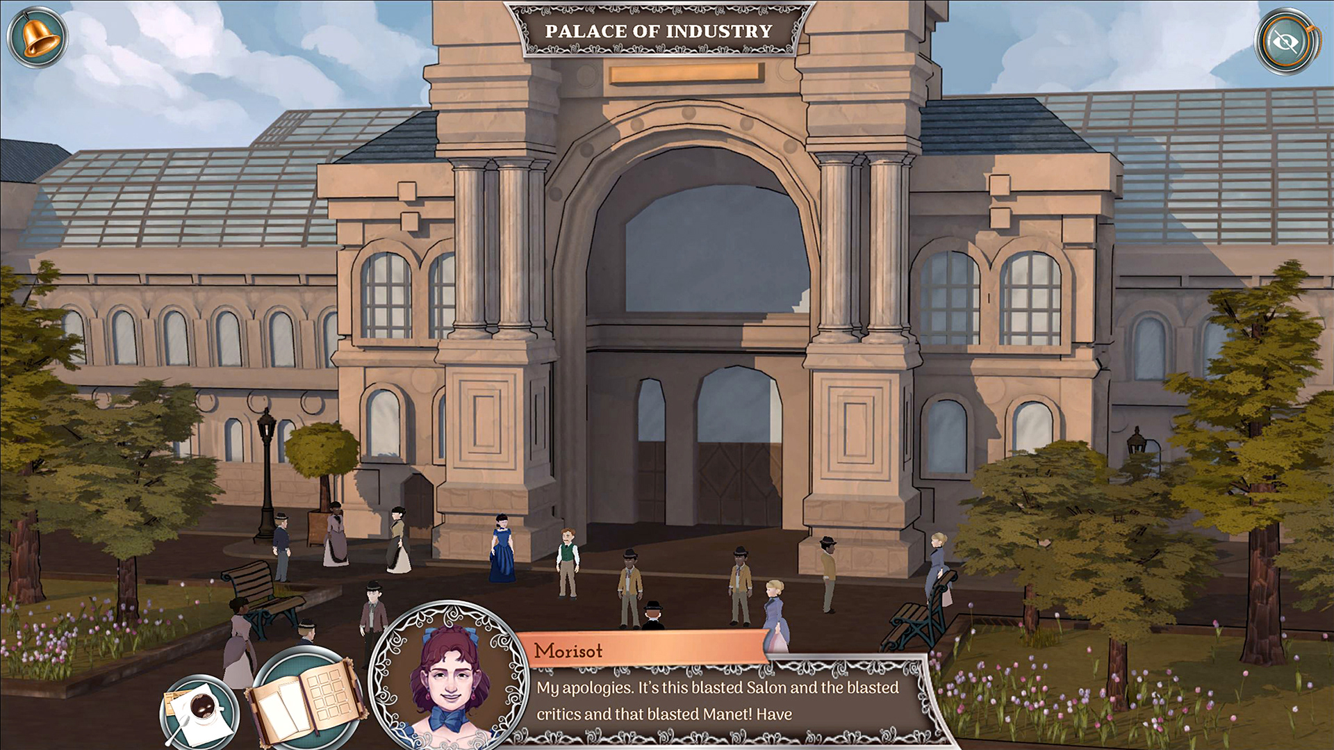 The game was designed in a 2.5D setup with 2D assets in a 3D environment and 3D characters. Not only did this design help us keep things optimized so the game would run in WebGL but it reminded us of an Impressionist painting - viewed too close or from the wrong angle, the scenes didn't make sense but from the right perspective, everything came together. The final game included 8 environments, the player character, 13 main (named) characters and about a dozen variants of the generic NPC, and 3 mini-games. The game was released on time in August 2018.